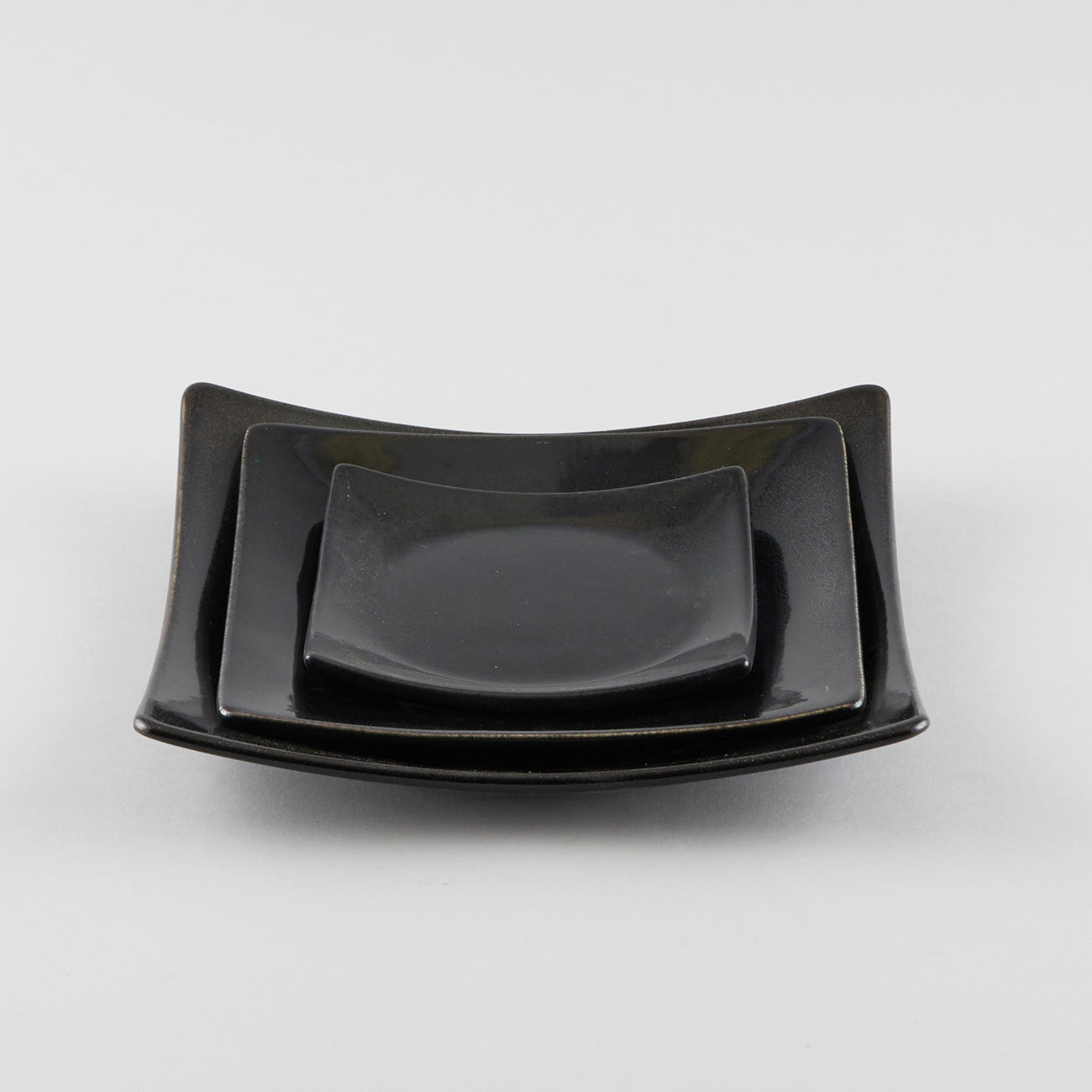 Full-Moon Sq. Plate with Raised Corners - Black (S)