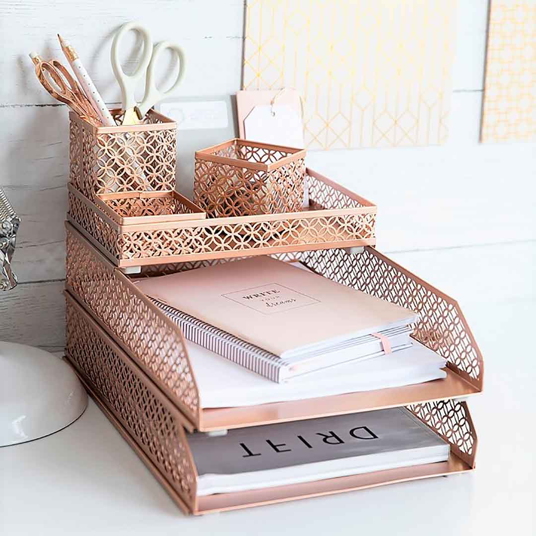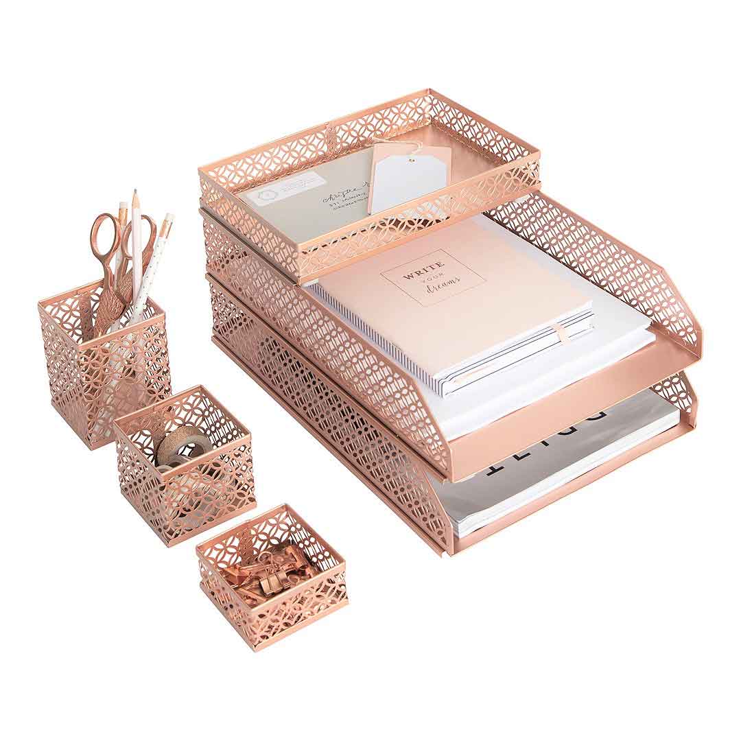 Riviera 6 Piece Rose Gold Interlocking Desk Organizer Set