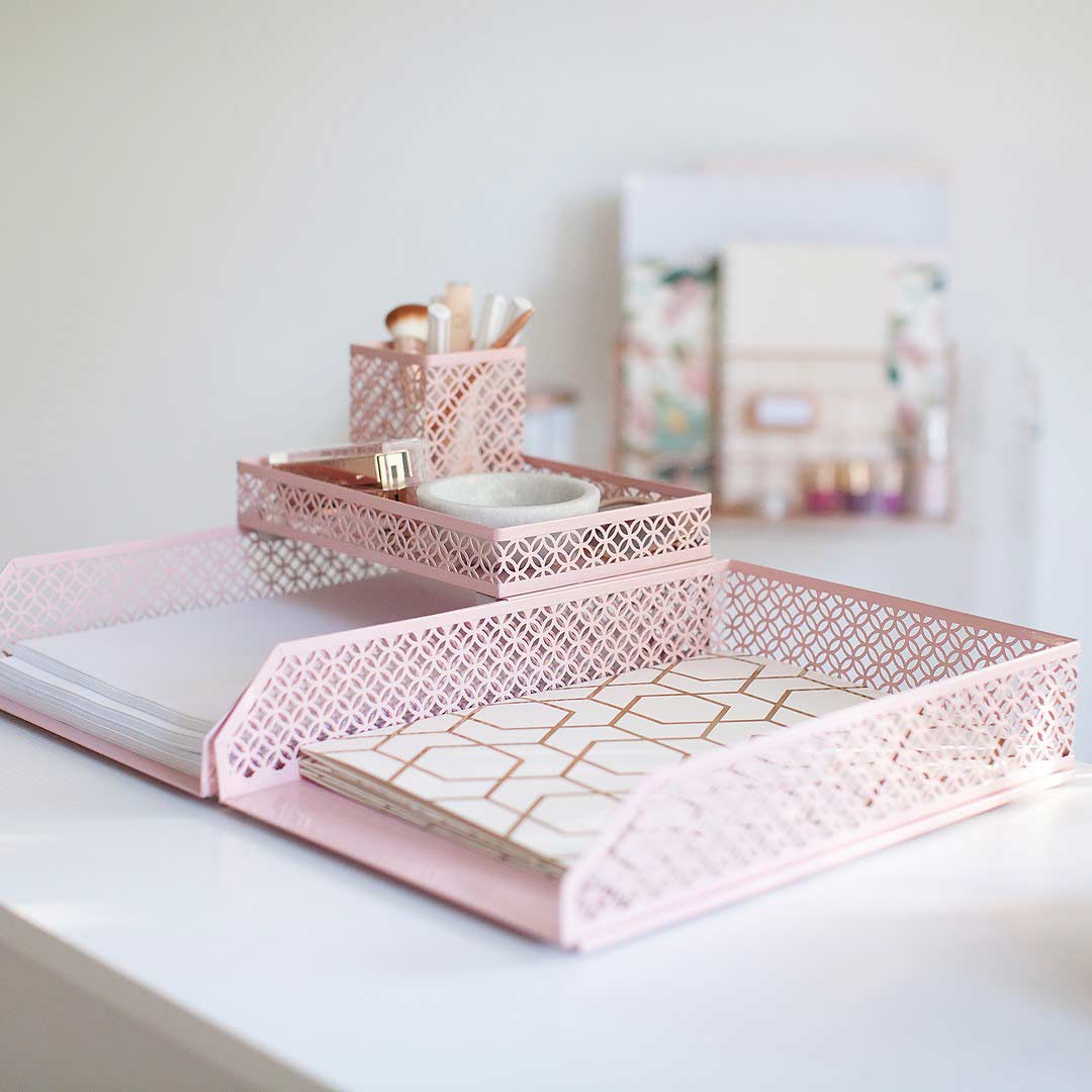 Riviera 6 Piece Pink Interlocking Desk Organizer Set