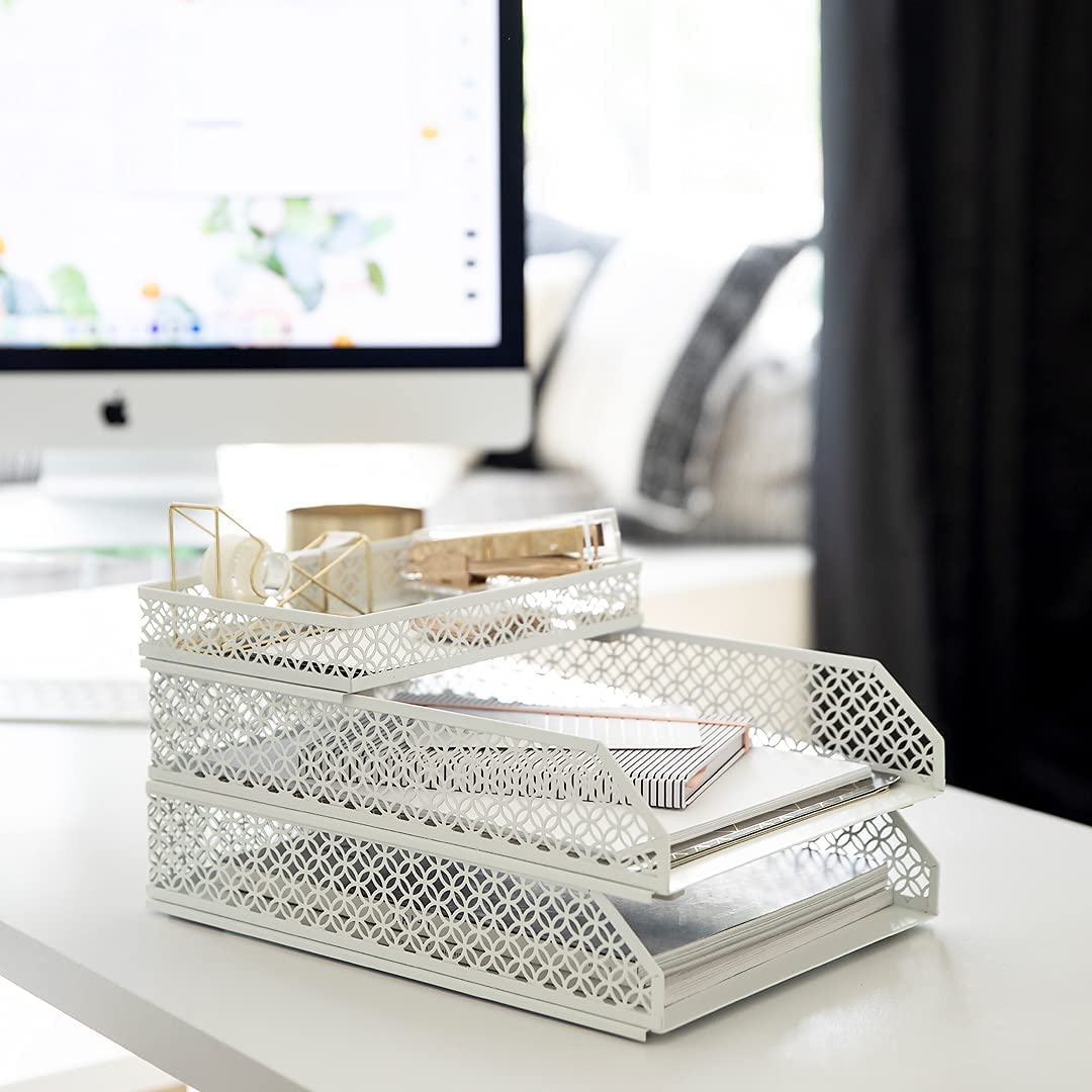 Stackable Paper Trays with Accessory Tray - 4 Tier - Black Metal Mesh - Letter Size