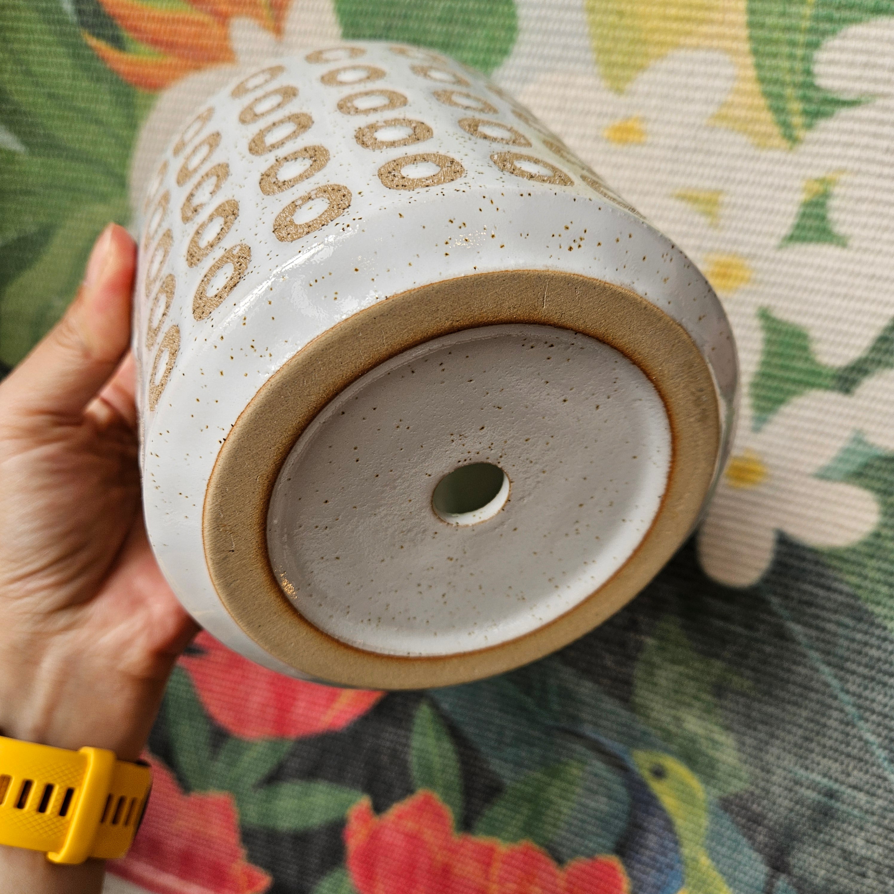 Ceramic pot with drainage hole